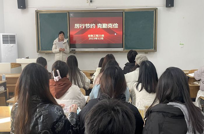 按照学院工作部署,学院各班级于12月下旬陆续召开“厉行节约 克勤克俭”主题班会,引导学生牢固树立节约观念,弘扬中华民族勤俭节约的传统美德。主题班会的召开,增强了同学们厉行节约、反对浪费的主人翁意识。大家纷纷表示:作为新时代的青年大学生,要树牢绿色生活理念,提升环保责任意识,要积极行动起来,从我做起、从现在做起、从身边点滴小事做起,努力做勤俭节约新风尚的传播者、实践者和示范者。