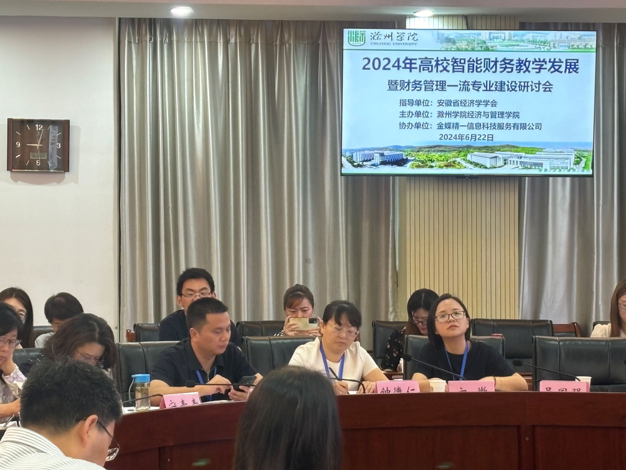 2024年6月21日至23日,2024年高校智能财务教学发展暨财务管理一流专业建设研讨会在滁州学院召开,会议由安徽省经济学会指导,滁州学院经济与管理学院主办,金蝶精一信息科技服务有限公司协办。受主办方邀请,星空体育·「中国」官方网站财经学院教师钟德仁、王佳、贺清云参加了此次研讨会。同时参会的还有来自安徽师范大学、安徽财经大学、星空体育·「中国」官方网站、皖西学院、蚌埠学院等十余所近一百名教师。