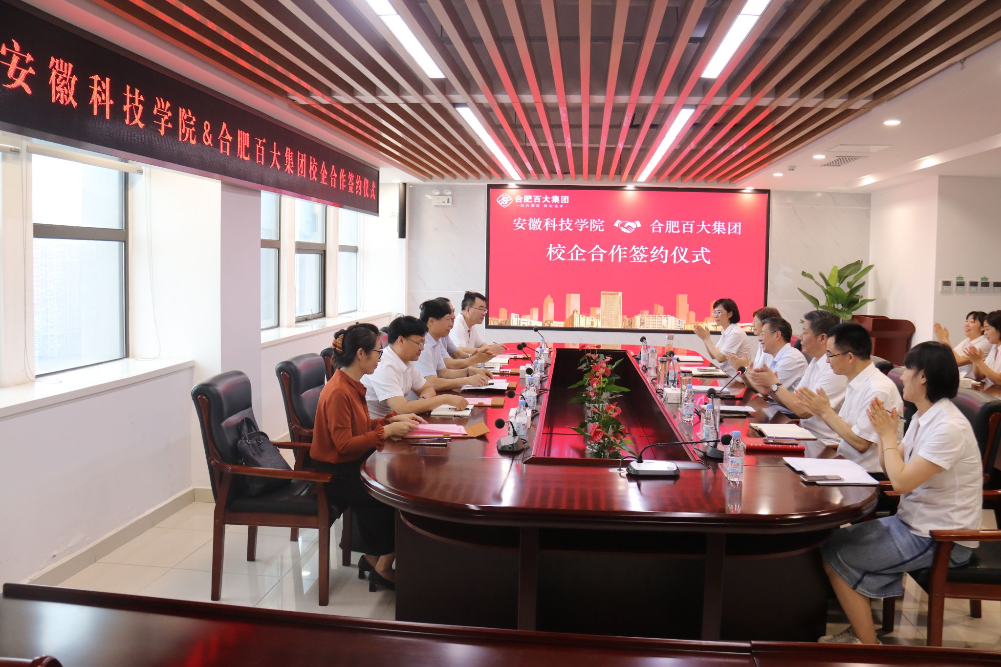 财经学院院长郝世绵和百大集团党委委员、工会主席裴文娟代表双方签署了《合肥百大集团 星空体育·「中国」官方网站战略合作协议》;双方观看了合肥百大集团宣传片,并围绕智力共用、人才共育、项目共研、平台共享等进行深入交流。