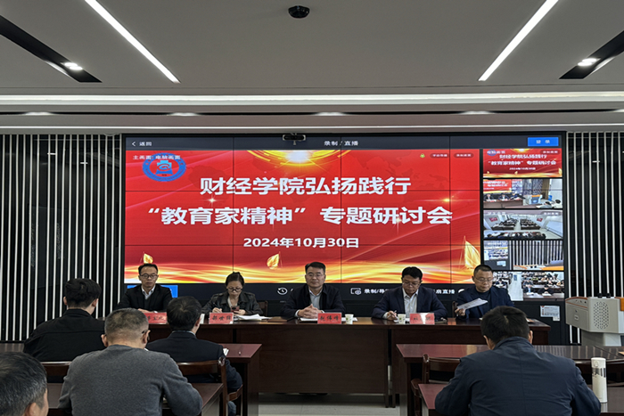 10月30日下午,财经学院在敏行楼302会议室召开教育家精神专题研讨会,校党委委员、副院长赵伟峰出席并作指导讲话。财经学院党政班子及全体教师参加会议,会议由学院党委书记杜小明主持。