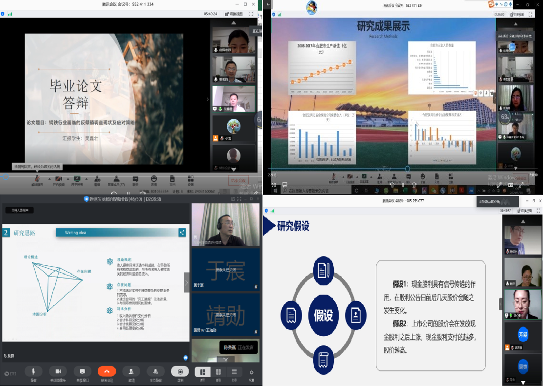 停课不停学,疫情防控期间,为确保2020届毕业论文质量,财经学院全体教师运用QQ、微信、钉钉和腾讯会议等线上平台对学生进行论文指导,并精心组织线上答辩。经过反复多次的线上指导,经过答辩前的线上演练,经过严格的答辩流程,老师们认真严谨的审核和提问,学生们清晰有效地陈述和回答,财经学院2020届毕业论文答辩提交了一份精彩的答卷。(特约通讯员:王旭东 审核:郝世绵)