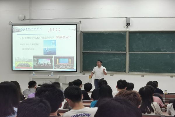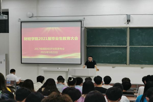 5月22日晚,财经学院在致知楼A111、致知楼B111教室分专业组织召开毕业生教育大会,2021届全体毕业生参加会议,学院党委书记杜小明、党委副书记耿广汉、各班级辅导员出席会议,会议由耿广汉主持。