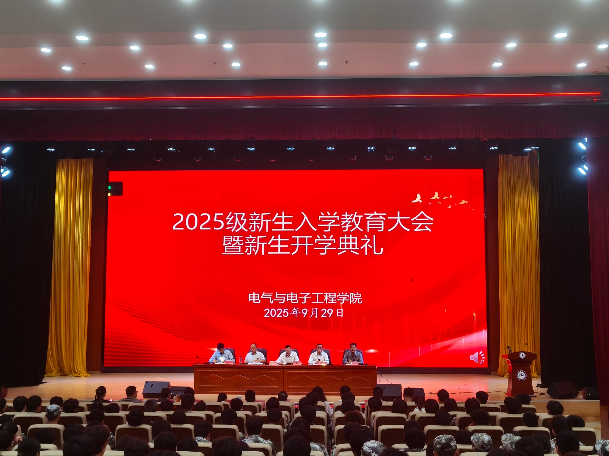 9月29日,电气与电子工程学院于龙湖校区东辅楼报告厅举办了2025级新生入学教育动员大会。学院党政领导、全体辅导员以及全体2025级新生参加,会议由学院党委书记骆海邦主持。