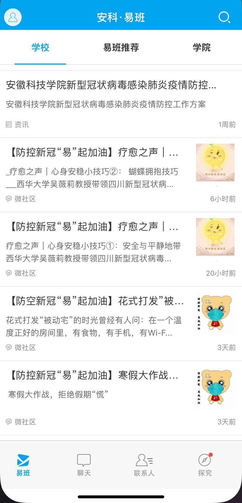 强宣传,利用易班广泛开展防控知识宣传。校易班发展中心通过易班发布学校各类信息,指导学生正确认识疫情,推送疫情症状介绍、确诊方法、治疗与预防、个人防护等相关知识,要求学生不谣言不传谣;实现学生疫情采集网上填报,辅导员网上查询;制作“防控新冠,易起加油”专题帖进行防控疫情的集中宣传和展示。目前已上线学生疫情采集应用,总访问量45886,单日最大访问人数11639。推送学校疫情防控工作安排、大学生心理疏导、在线学习资料等各类优质阅读内容近30篇,以线上专题、在线优课课群学习等形式在安科易班平台集中宣传和展示我校师生防疫抗疫精神面貌,不断加大防疫抗疫宣传力度。