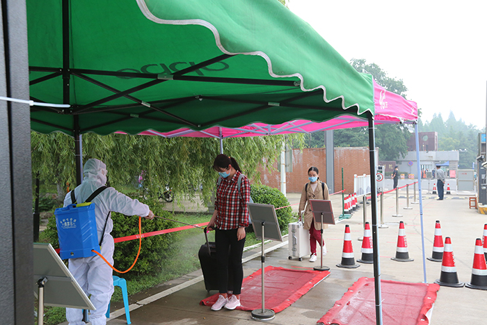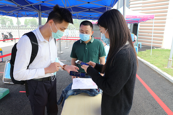 “在返校之前老师就通知我们一切需要准备的东西,比如准备的‘一书两码’,以及到校后的疫情防控指南,让我们到学校后的工作变得简单。到学校后,学校为我们做的接待工作也很贴心。进入学校进行消毒、测温、并给我们发放口罩和体温计,整个流程非常严谨,感谢每一位为我们付出的老师。”机电技术教育专业毕业生唐强说。