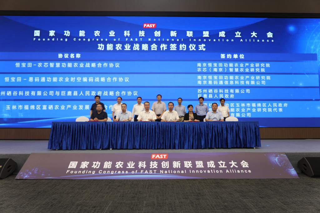 大会由国家功能农业科技创新联盟和南京国家农创园管理委员会主办,南京恒宝田功能农业产业研究院和南京农创园科创投资集团承办,中国科技大学苏州研究院功能农业重点实验室和星空体育·「中国」官方网站协办。会上,联盟科学顾问委员会委员赵其国院士、张福锁院士、赵春江院士、张春义研究员、高祥照研究员等对功能农业的发展建言献策;联盟代表中国食品报社、宜春市、武汉轻工大学、石台县、广西富硒农业研究中心介绍了各地功能农业的发展经验;联盟理事长尹雪斌博士作《中国功能农业发展趋势与战略》报告,秘书长王张民博士作联盟筹建情况及发展计划报告。会上还进行了国家功能农业科技创新联盟聘任证书颁发、功能农业战略合作签约、《功能农业百问》新书发布等。