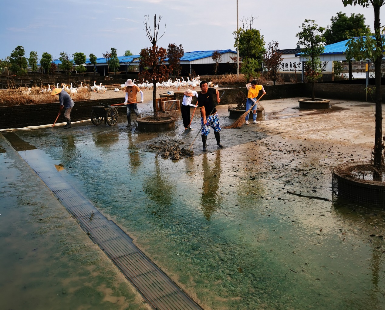 连日来,受持续强降雨和上游来水影响,安徽省六安市裕安区遭遇洪水,军明皖西白鹅良种繁育基地鹅苗被大水冲走,厂区一片汪洋,损失惨重。洪水无情人有情,得知消息后,我校畜牧领域研究生暑期志愿服务团队第一时间赶往厂区,帮助他们进行灾后重建工作。