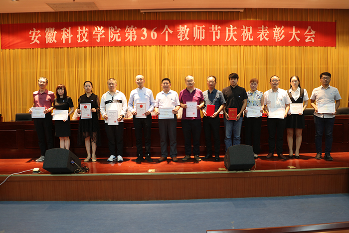 在全省上下深入学习贯彻习近平总书记考察安徽重要讲话精神的热潮中,在全校上下喜迎学校70华诞之际,9月10日下午,我校在新图书馆第二报告厅举行庆祝第三十六个教师节表彰大会。校党委书记蒋德勤出席大会并讲话,党委副书记、校长李震主持大会。党委副书记韦文联,党委委员、副校长黄远友,党委委员、纪委书记王强,党委委员、副校长李升和出席大会。