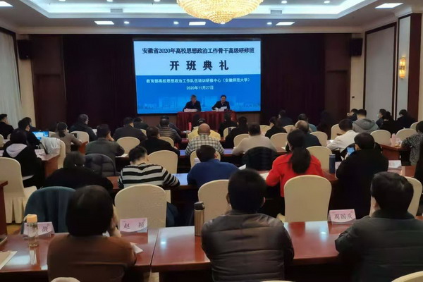为深入学习贯彻习近平新时代中国特色社会主义思想,全面贯彻落实党的十九届五中全会精神和全国全省教育大会精神和学校思想政治理论课教师座谈会各项工作部署,进一步推动安徽省高校思想政治工作专门力量建设,11月27日至12月6日,由中共安徽省委教育工委主办、教育部高校思想政治工作队伍培训研修中心(安徽师范大学)承办的安徽省2020年高校思想政治工作骨干高级研修班在安徽师范大学顺利举行,来自省内43所高校的65名辅导员和学工干部参加了此次培训,我校动物科学学院辅导员李焱和农学院辅导员汪道兵参加培训。