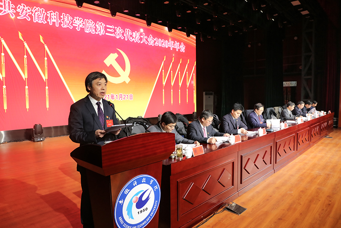 报告指出,2020年是极不平凡的一年。一年来,在省委、省政府和省委教育工委、省教育厅的正确领导下,学校党委以习近平新时代中国特色社会主义思想为指导,深入学习贯彻党的十九大和十九届二中、三中、四中、五中全会精神,认真学习宣传贯彻习近平总书记考察安徽重要讲话指示精神,增强“四个意识”、坚定“四个自信”、做到“两个维护”,坚持立德树人,团结带领全校党员干部和师生员工,统筹推进疫情防控和事业发展,贯彻落实学校第三次党代会精神,顺利完成年度工作任务,党建工作和事业发展取得新成就,硕士学位授权单位创建胜利在望,获省委综合考核优秀等次,为一流应用型大学建设奠定了更加坚实的基础。