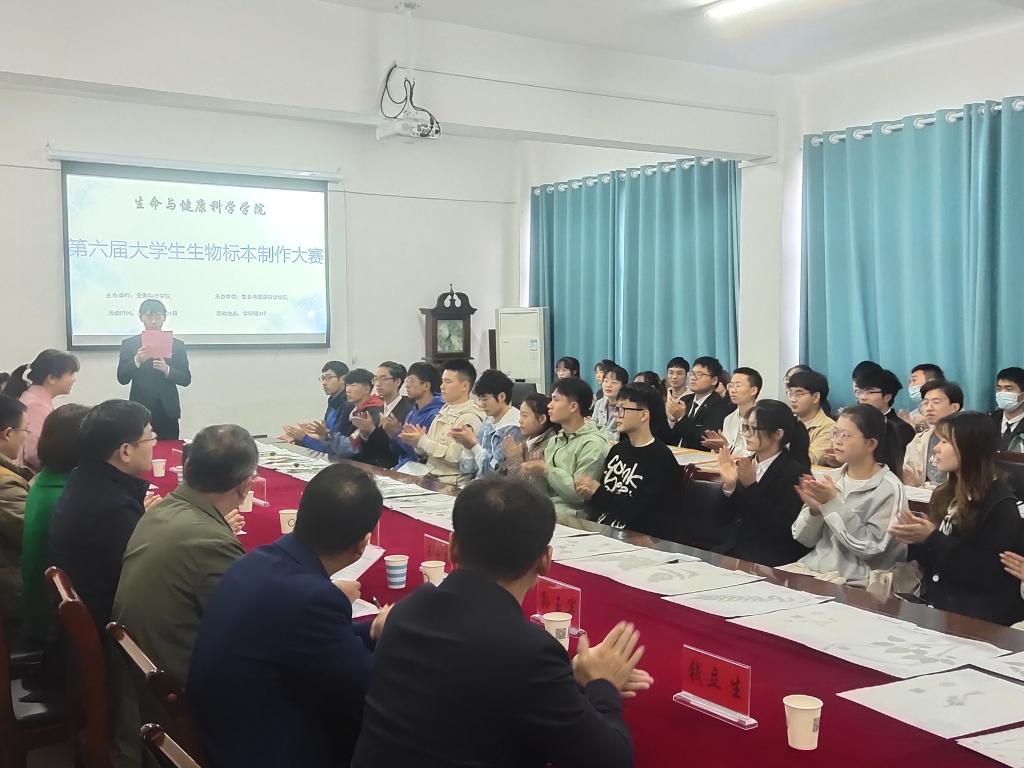10月24日,2021年安徽省大学生生物标本制作大赛校内选拔赛在生命与健康科学学院会议室成功举办。本次大赛由星空体育·「中国」官方网站教务处、创新创业学院主办,生命与健康科学学院承办。皖西学院刘昌利教授,蚌埠医学院吴华彰教授,我校教务处副处长、创新创业学院副院长高青海教授,我校生命与健康科学学院鲍方印教授、王玉良教授,担任本次比赛的评委。学院党委副书记、副院长(主持工作)孙玉军,副院长陈浩、钱立生参加本次活动。比赛由生命与健康科学学院学生会查道军同学主持。