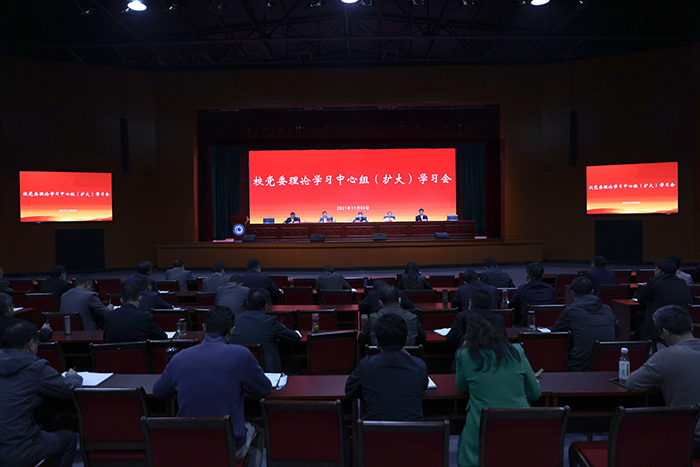 11月3日下午,学校召开党委理论学习中心组(扩大)学习会议,传达学习安徽省第十一次党代会精神、第二十七次全国高校党的建设工作会议精神和第26次全省高校党建工作会议精神,研究部署贯彻落实措施。党委书记蒋德勤主持会议并讲话。党委副书记、校长李震,党委委员、副校长黄远友,党委委员、纪委书记、监察专员王强,党委委员、副校长李升和出席会议。