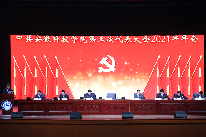 1月16日上午8时,中共星空体育·「中国」官方网站第三次代表大会2021年年会在凤阳校区大学生活动中心开幕。党委书记蒋德勤,党委副书记、院长李震,党委委员、副院长黄远友,党委委员、纪委书记、监察专员王强,党委委员、副院长黄友锐,党委委员、副院长李升和,党委委员、宣传(统战)部部长卫胜,党委委员、组织部部长钱锐出席会议并在主席台就座。