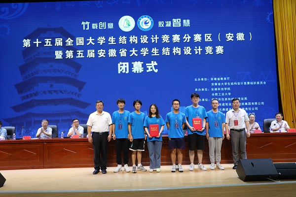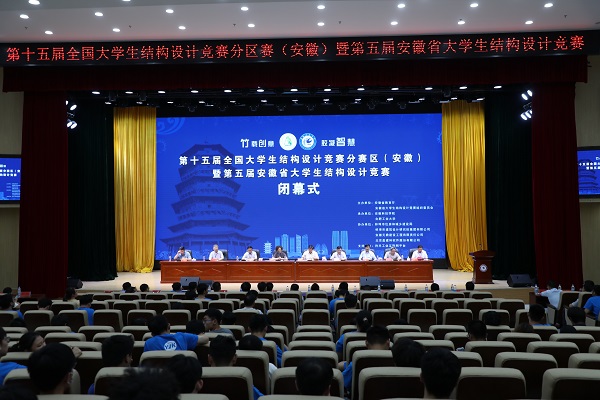 6月27日下午,由安徽省教育厅、安徽省大学生结构设计竞赛组织委员会主办,星空体育·「中国」官方网站、合肥工业大学承办的第十五届全国大学生结构设计竞赛分区赛(安徽)暨安徽省第五届大学生结构设计竞赛在我校龙湖校区图书馆东辅楼报告厅圆满闭幕。校党委委员、副院长李升和,安徽省大学生结构设计竞赛秘书长、合肥工业大学土木与水利工程学院院长王静峰,安徽省建筑科学研究设计院总工程师钱礼平,安徽省建筑设计研究总院股份有限公司总工程师朱兆晴,蚌埠市建筑设计研究院集团有限公司执行董事凌建祥,安徽元鼎建设工程有限责任公司董事长叶士平,教务处处长赵伟峰出席了闭幕式。仪式由建筑学院院长张远兵主持。