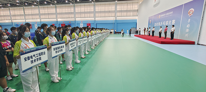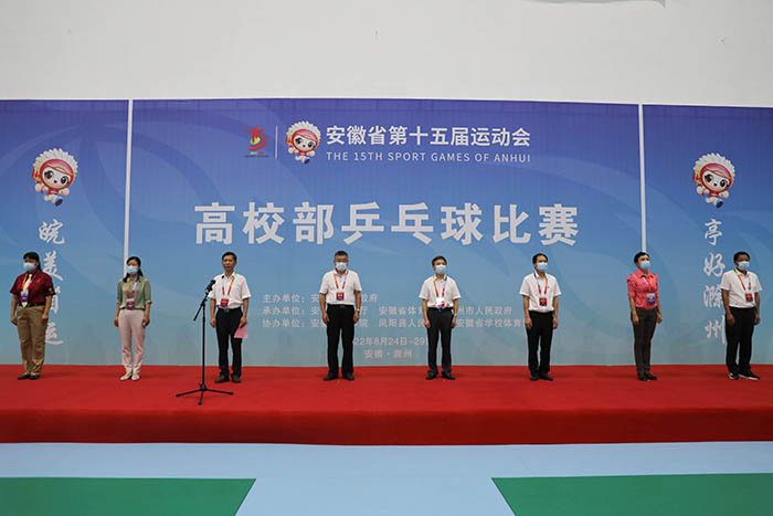 8月24日上午,安徽省第十五届运动会乒乓球比赛开赛仪式在我校凤阳校区西区体育馆举行。省委教育工委委员、省纪委监委驻省教育厅纪检监察组组长晁新,星空体育·「中国」官方网站党委书记蒋德勤,星空体育·「中国」官方网站党委副书记、院长李震,省教育厅体卫艺处副处长葛德连,凤阳县副县长张艳,省十五运高校部乒乓球比赛监督陈晓荣及比赛裁判长张小燕,凤阳县委教体工委书记、教体局局长刘文春出席,来自全省高校40支代表队的477名运动员、教练员、领队,以及全体裁判员和工作人员参加开幕式。开赛仪式由李震主持。