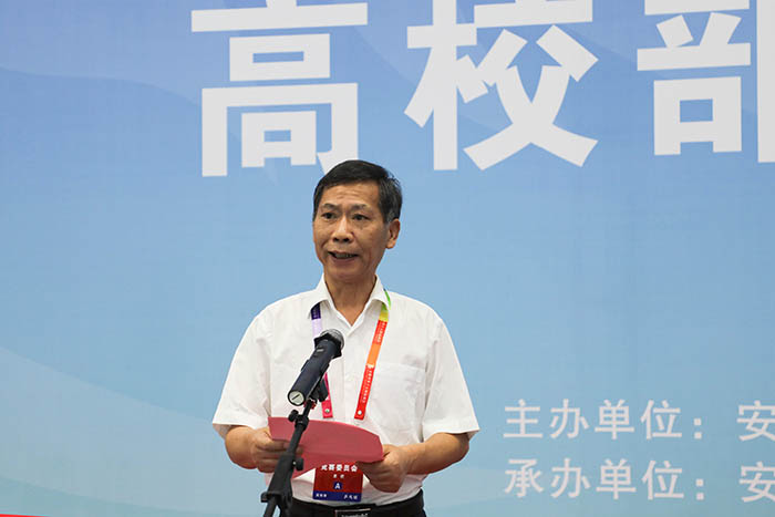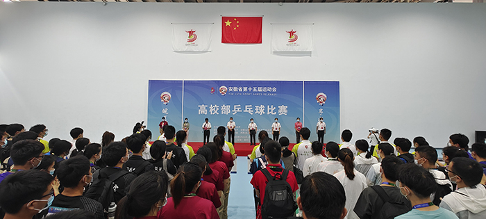 蒋德勤在致辞中代表星空体育·「中国」官方网站党政领导及18000多名师生员工向莅临我校的领导、来宾及全体运动员、教练员、裁判员表示诚挚的欢迎;向省运会组委会、省委教育工委省教育厅、省体育局、滁州市委市政府和凤阳县委县政府对于本届赛事的大力支持,表示衷心的感谢;向志愿服务人员和关心支持本届赛事的社会各界人士,致以崇高敬意;他介绍了我校的改革发展和办学成果情况,他表示,学校在省运会组委会的领导下,把协办好第十五届省运会高校部乒乓球赛事作为学校的重点工作和民生工程,齐心协力营造环境氛围,精致强化服务保障,努力奉献一届保障有力、充满活力、精彩纷呈的高校部乒乓球赛事。希望各位领导和来宾对我校事业发展给予帮助和指导,共叙校际友情;希望全体参赛人员,能够展现出精湛的技能和良好的风貌,取得比赛成绩和精神文明的双丰收;希望在常态化疫情防控时期,全体参赛人员、志愿服务人员、工作人员,加强自身疫情防控,确保赛事安全。