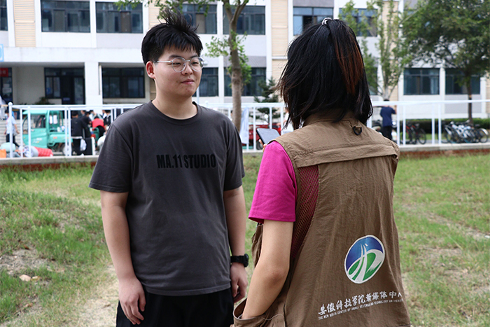 当谈到自己的家乡,田媛嫣然一笑,向记者介绍了那一座山清水秀,人杰地灵的江南小城--池州。当问及离开熟悉的家乡,开启一段截然不同的学校生活,是否会感到失落。她怡然答道,“走过的每一条路都有不同的故事,我会分享给我的父母和朋友,他们与我同在。”傲立的身姿坚挺有力,昭示着她对大学生活的期待向往。而出生滁州的冯超,对于蚌埠的风景文化有着浓厚的兴趣,期盼闲暇之余能够体验“珠城”的人文习俗。