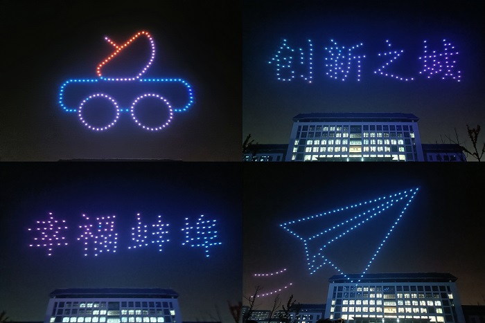为充分发挥高校科研育人优势,扎实助力科教兴国战略实施,11月25日晚,我校于龙湖校区成功举办大型无人机群灯光展演秀。此次展演由星空体育·「中国」官方网站电气与电子工程学院承办,蚌埠市科协、市民政局、高新区管委会、蚌埠市电子信息学会、蚌埠飞鹄智能科技公司、青岛鲁飞机械科技有限公司共同参与此次展演活动并提供技术保障。