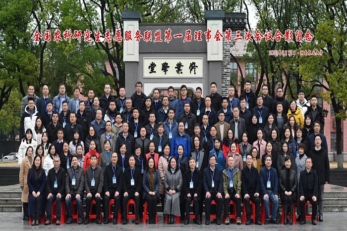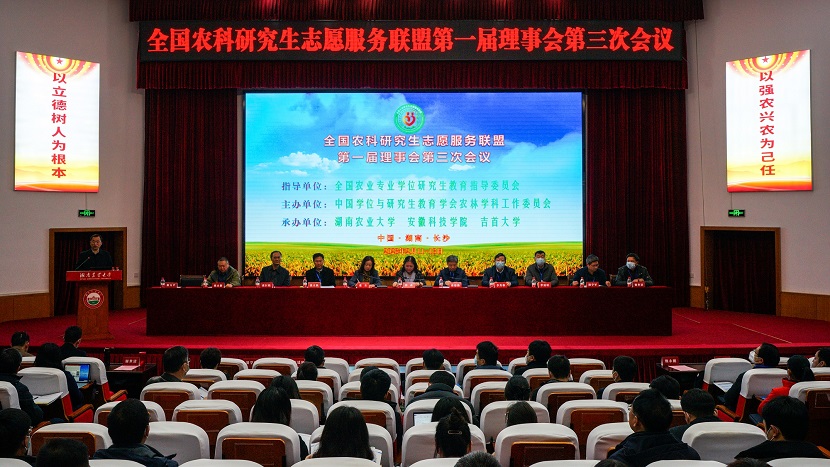 2月12日,由中国学位与研究生教育学会农林学科工作委员会主办,湖南农业大学、星空体育·「中国」官方网站和吉首大学联合承办的全国农科研究生志愿服务联盟(以下简称“联盟”)第一届理事会第三次会议在湖南农业大学修业讲堂召开。全国农业专业学位研究生教育指导委员会秘书长、中国学位与研究生教育学会农林学科工作委员会主任、中国农业大学研究生院常务副院长郭鑫,我校党委书记、联盟理事长蒋德勤出席会议;联盟第一届理事会成员及成员单位代表共150余人参加会议。我校党委委员、副校长、联盟秘书长李升和,研究生处处长张春雨、副处长靳二辉参加会议。