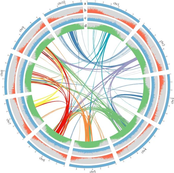 苏丹草是高粱属一年生饲草,具有分蘖能力强、生长速度快等优点。该研究利用二代、三代及Hi-C测序相结合的策略,完成了苏丹草材料S722的基因组组装。组装的基因组大小为715.95 Mb,10条染色体,杂合度为0.225%。组装完整度BUSCO评估97.9%;同时完成基因组编码基因的结构注释,得到35243个结构基因,是全球首个完成测序、组装的苏丹草基因组。