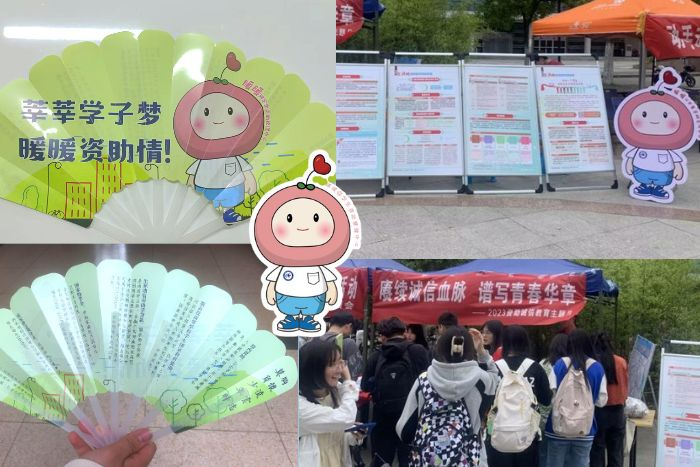 创新赋能,文创助力政策宣导。为贴近学生,学生资助中心积极探索资助政策宣传新思路,设计安科资助宣传卡通形象“暖暖”,开发文创产品,用学生话语体系讲解资助政策,提升宣传效果。在近期开展的诚信承诺签名活动、生源地助学贷款政策宣传活动中大展风采,吸引了许多同学的眼球。一把把可爱又实用的“暖暖扇子”,一个个晶莹剔透的钥匙链,一经露面就引得前来参加活动咨询政策同学们一阵阵的赞叹:“这个形象暖心又可爱,感觉资助跟我们又贴近了。”(特约通讯员:石志成 摄影:马震震 审核:胡文靖 姚文均 编辑:张威)