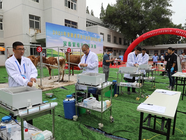 为全面贯彻落实党的二十大、中央农村工作会议和2023年中央一号文件精神,推进落实省委省政府实施“秸秆变肉”暨肉牛振兴计划工程,进一步加强我省畜牧人才队伍建设,9月21日至22日,2023年安徽省农业行业职业技能大赛——家畜繁殖员赛项决赛在我校凤阳校区成功举办,全国畜牧总站副站长左玲玲、安徽省农业农村厅副厅长汤洋、安徽省总工会农林水利气象工会二级调研员王怀宇,校党委副书记、院长李震,党委委员、副院长王孝义应邀出席开幕式并讲话。省农业农村厅机关党委、人事处、畜牧处、畜保中心,滁州市农业农村局、凤阳县农业农村局等相关负责人参加了开幕式。
