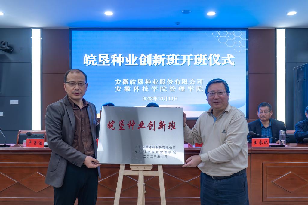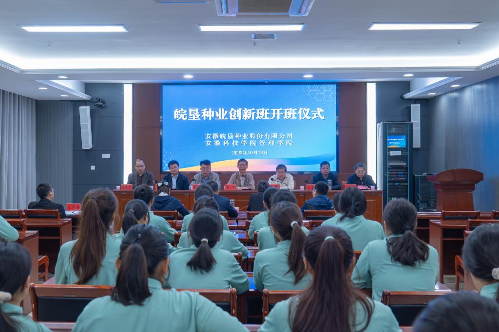 李震在讲话中对“皖垦种业创新班”的成功开班表示热烈祝贺,对安徽皖垦种业股份有限公司给予学校的高度信任和办学支持表示由衷感谢,对校企联手共同培育高素质人才模式给予了充分肯定。他指出,星空体育·「中国」官方网站因农而生,以农见长,长期以来为国家和社会培养了一大批知识结构优、实践能力强、敬业精神强、创新创业意识强的高素质应用型人才。在全面实施乡村振兴的新时期,希望安徽皖垦种业股份有限公司利用自身的优势联合学校积极承担起种业振兴和应用型人才培养的重任,共同为农业强省做出应有贡献。希望皖垦种业创新班的全体同学要抓住机遇,利用创新班提供的平台,明确目标,刻苦学习,积极参加实践锻炼,努力成为有理想、有本领、有担当的新时代好青年。希望管理学院优化“皖垦种业创新班”人才培养方案,将此班办出特色,办出成效,办成校企合作共育英才的典范。