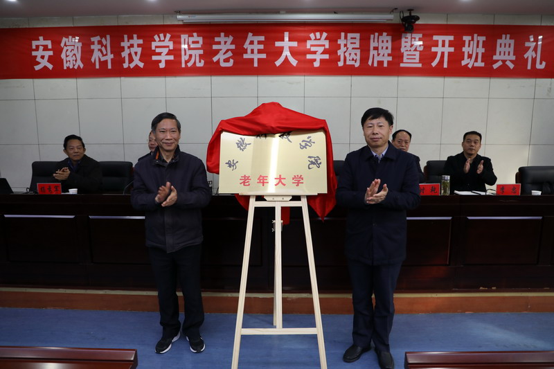 在热烈的掌声中,时伟和李震共同为学校老年大学揭牌,这标志着我校老龄事业进入了专业化、规模化发展的新阶段。