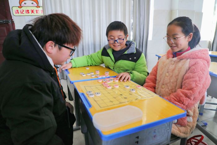 程飞说看见孩子们会回想起自己小时候的样子,回忆起天真无邪的童年,很喜欢和孩子们待在一起享受纯真的感觉。最让他感到欣慰的是,小学员们在面对失败时并没有闷闷不乐,而是表现出积极乐观的态度。小学员们越挫越勇,凭着不服输的劲头继续和小伙伴下上一局象棋,程飞则在孩子们中间进行适当的指导,共同搭建起一个和谐友爱的课堂氛围。