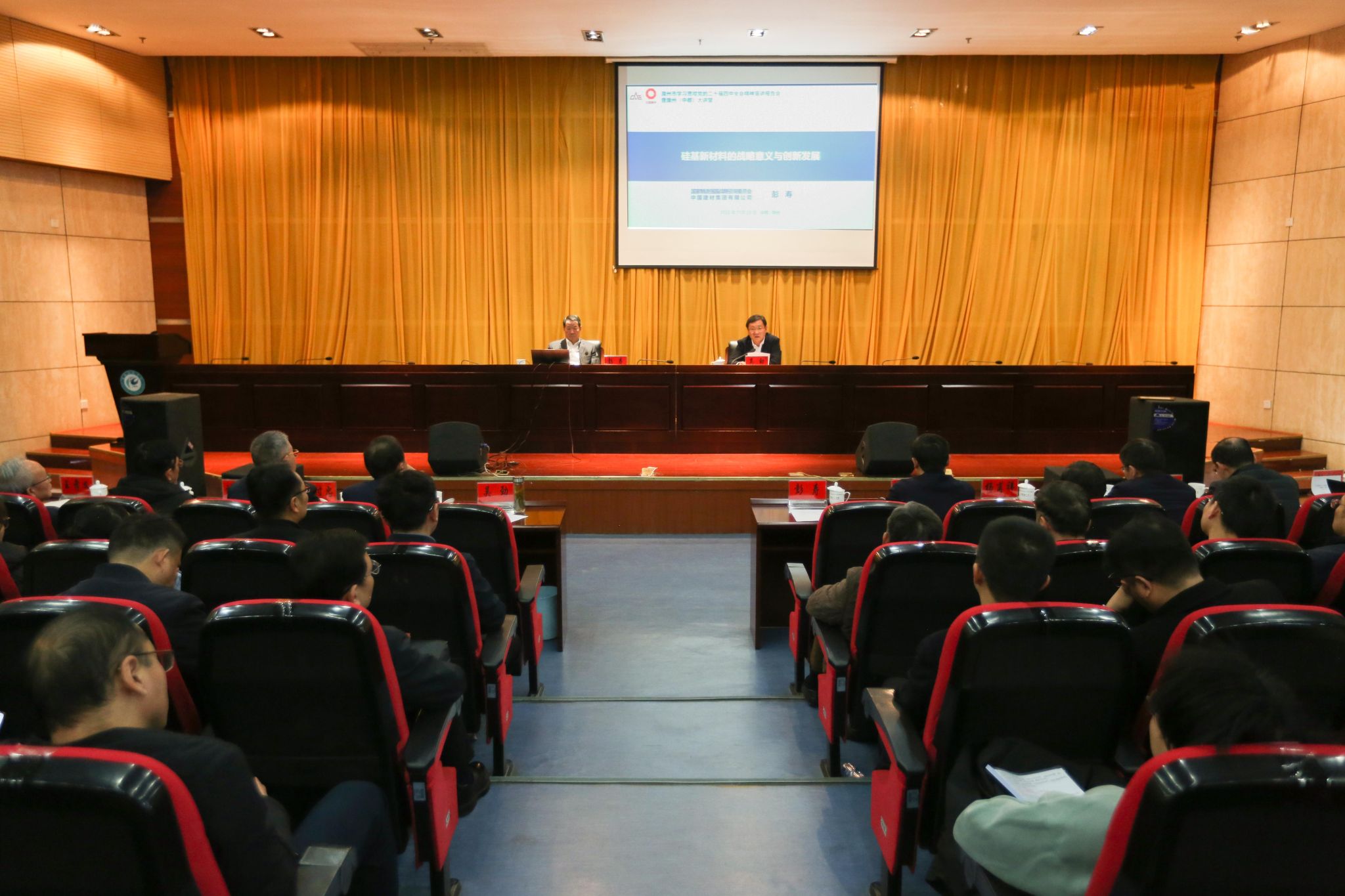 彭寿围绕学习贯彻党的二十届四中全会精神,站在国家“十五五”规划实施、科技产业前沿布局的高度,围绕新材料创新与产业发展的战略意义、国家战略性领域对硅基新材料的应用需求、区域产业生态构建与高质量发展路径等方面进行了系统辅导。