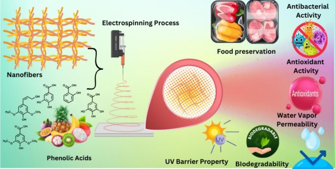日益增长的可持续食品包装需求,推动了生物活性酚酸结合的电纺丝纳米纤维的创新。该论文重点阐述了酚酸——如单宁酸、没食子酸和茶多酚等在提升电纺纳米纤维生物降解聚合物功能性的关键作用。这些化合物通过氢键与共价相互作用,增强了材料的机械强度、热稳定性和阻隔性能,同时其抗氧化与抗菌活性能够有效抑制食品氧化变质和微生物污染,文献研究证实了其在易腐食品(包括肉类、水果和海鲜)中延长货架期的有效性。此外,通过同轴或多层结构等先进电纺技术实现的控制释放机制,确保了生物活性的持续发挥。该综述也探讨了优化释放动力学与规模化生产所面临的挑战。酚酸功能化纳米纤维将材料创新与实际食品保鲜需求相结合,为食品新一代活性包装设计提供了一种多功能且环境友好的解决方案。该论文得到了安徽省高校优秀科研创新团队(2024AH010007)和星空体育·「中国」官方网站科技创新团队项目(2023KJCXTD003)的资助。