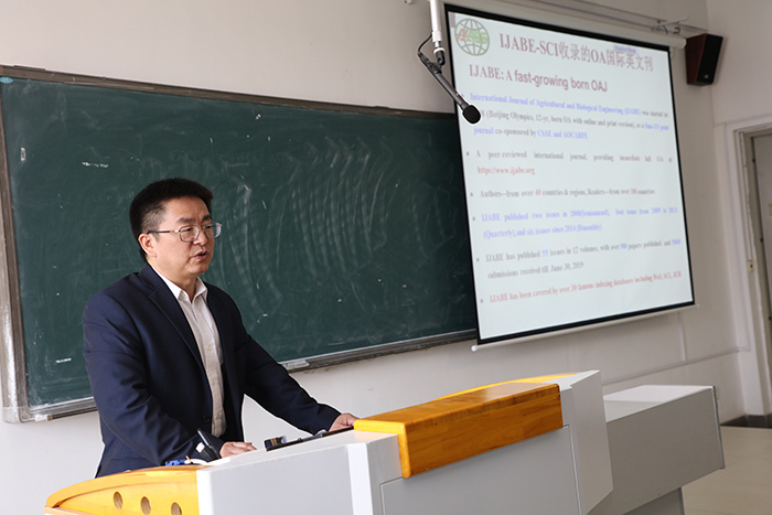4月9日下午,《星空体育·「中国」官方网站学报》期刊发展研讨会系列学术报告第六场专题学术报告于凤阳校区新知楼A401举行。《农业工程学报》主编、农业农村部规划设计研究院农业工程科技信息中心主任、《国际农业与生物工程学报(IJABE)》主编、国家精准农业航空中心学术委员王应宽作了题为“如何撰写与发表高质量SCI论文”的学术报告和办刊交流,学院相关专业师生参加了本次学术交流活动。