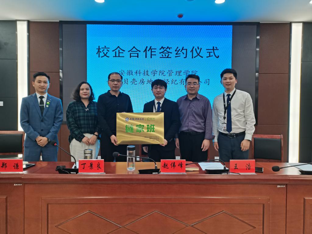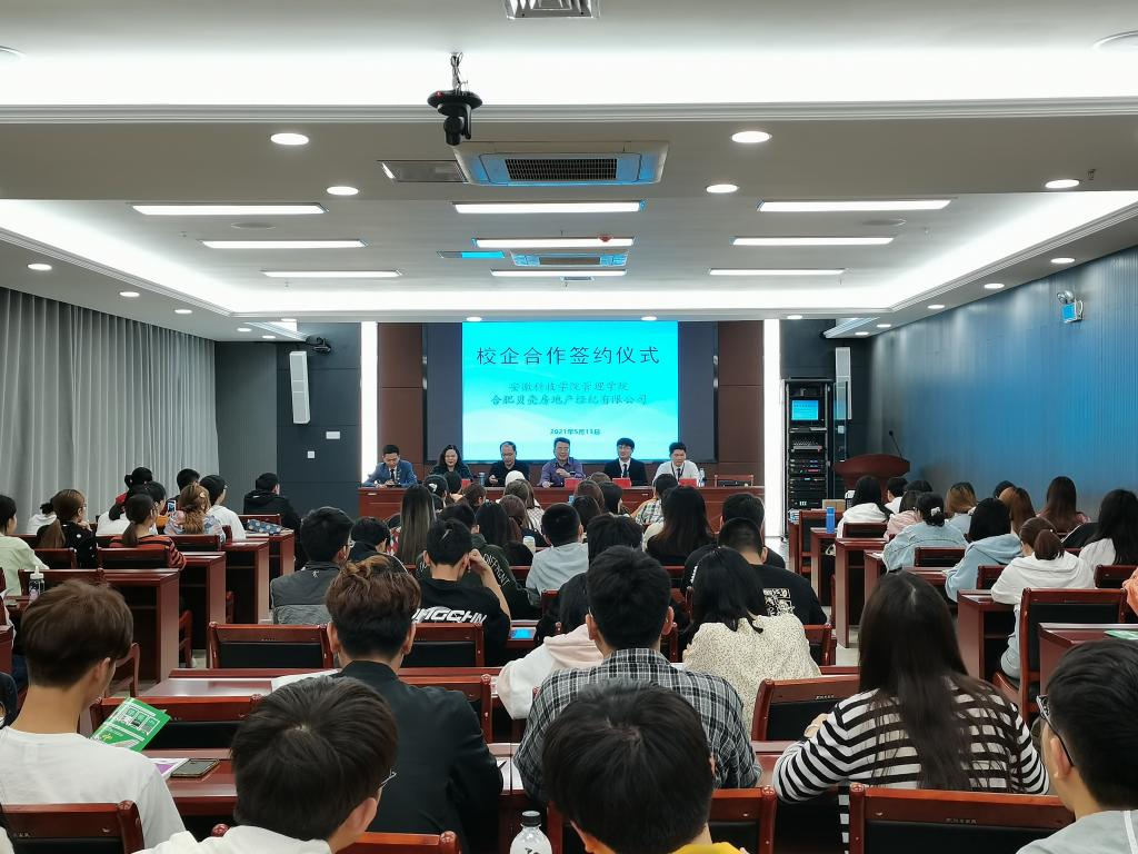 赵伟峰与王浩共同签署了《星空体育·「中国」官方网站与合肥贝壳房地产经纪有限公司校企合作协议书》,举行了人才培养合作班授牌仪式。