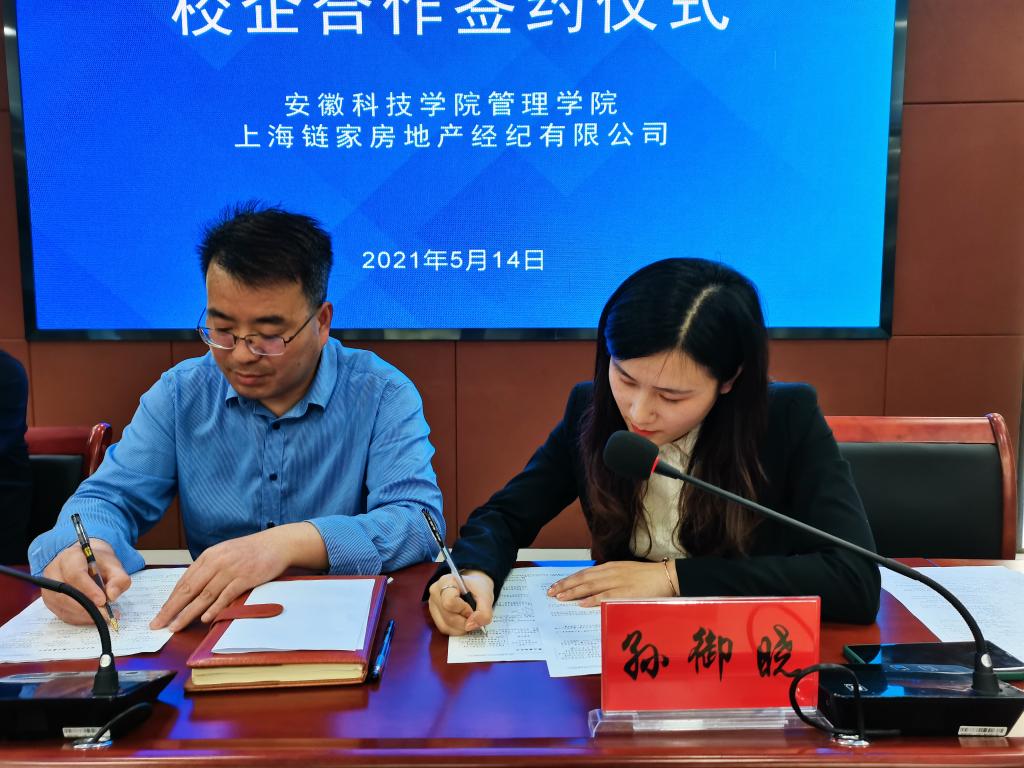 赵伟峰与孙御晓共同签署了《星空体育·「中国」官方网站与上海链家房地产经纪有限公司校企合作协议书》。