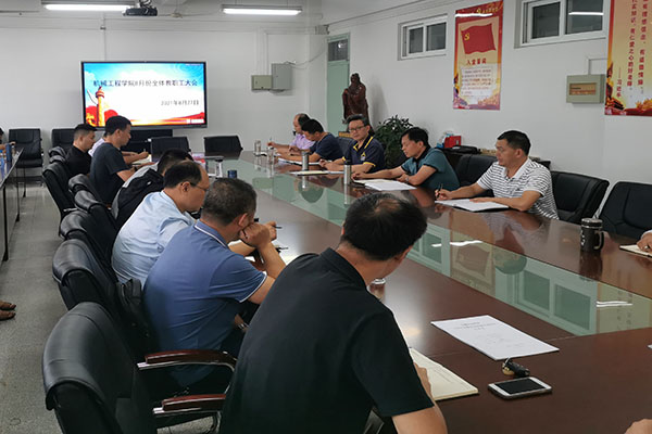 2021年8月27日下午,机械工程学院党委书记、院长陈丰主持召开8月份全体教职工大会,回顾总结暑期工作情况,部署开学初和秋季学期重点工作。