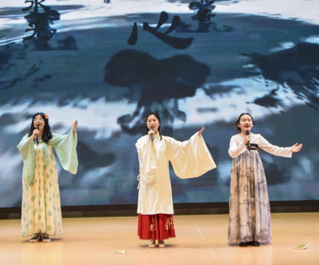 青春的勃发在笛声的律动下陶醉,焚烧的激情在婉转的旋律中彷徨,民乐《大鱼》透过微颤的琴弦,超出幽静的曲调来展现《大鱼海棠》的故事,让人为之动容。轻松愉悦过的游戏环节后。飞扬艺术团带来的舞蹈《savage》更是引爆全场,炫酷的灯光更是营造了激情飞扬的氛围。歌曲《为了谁》歌颂了舍生忘死的抗疫英雄们,讴歌了伟大的抗疫精神。诗朗诵《畅游古诗的海洋》以及歌曲串烧《我的名字》、说唱《飘向北方》、小品《甄嬛传后传》把晚会又一次推向气氛高潮。