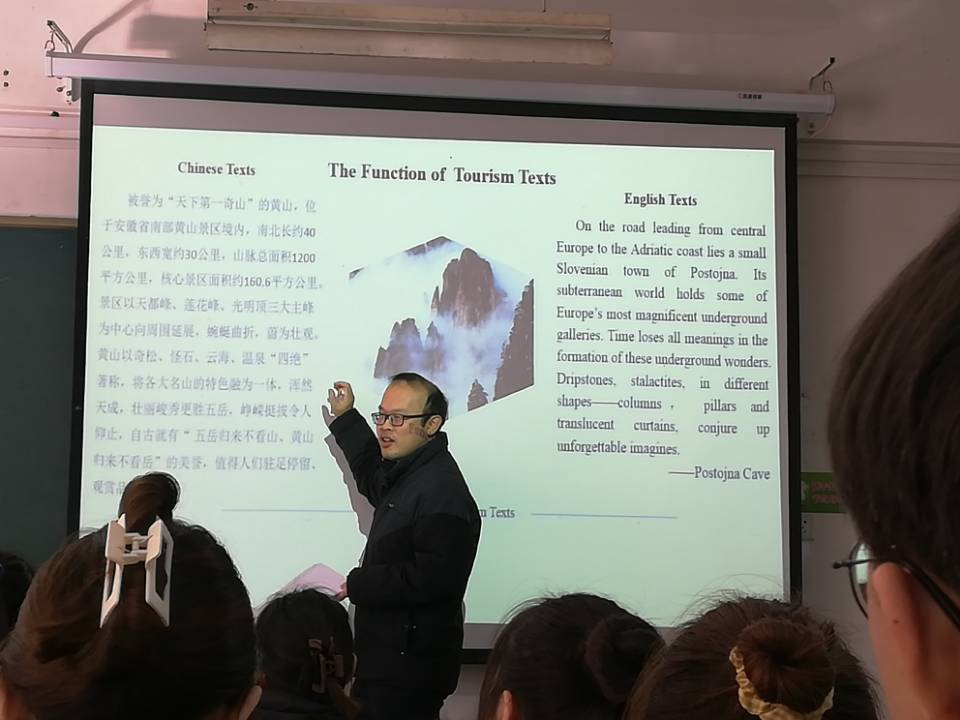 王翊老师本次讲授的是《应用翻译》课程Unit 8 Tourism Translation(旅游翻译)章节的内容。根据2020年教育部高等学校大学外语教学指导委员会颁布的《外国语言文学类专业教学指南》要求,专业教学需突出“立德树人”的根本任务,坚持走内涵式发展道路,以全面提高人才培养能力为核心,把培养具有国际视野、中国情怀、创新精神的高素质外语专业人才和复合型人才作为高校外语专业建设的出发点和落脚点。本节课王老师首先介绍了旅游文本作为应用型文本的文本功能;其次分别以中、英旅游文本案例启发学生观察总结两种语言文本各自的语言特征;最后引导学生从东、西方审美取向、哲学观念及民族意识等方面去思考中、英旅游文本语言差异的内在成因,倡导学生在翻译学习过程中不局限于语言表层的转换,而应向文化层面深入求索,尤其需要深入学习中华优秀传统文化,唤醒文化自觉,树立文化自信。