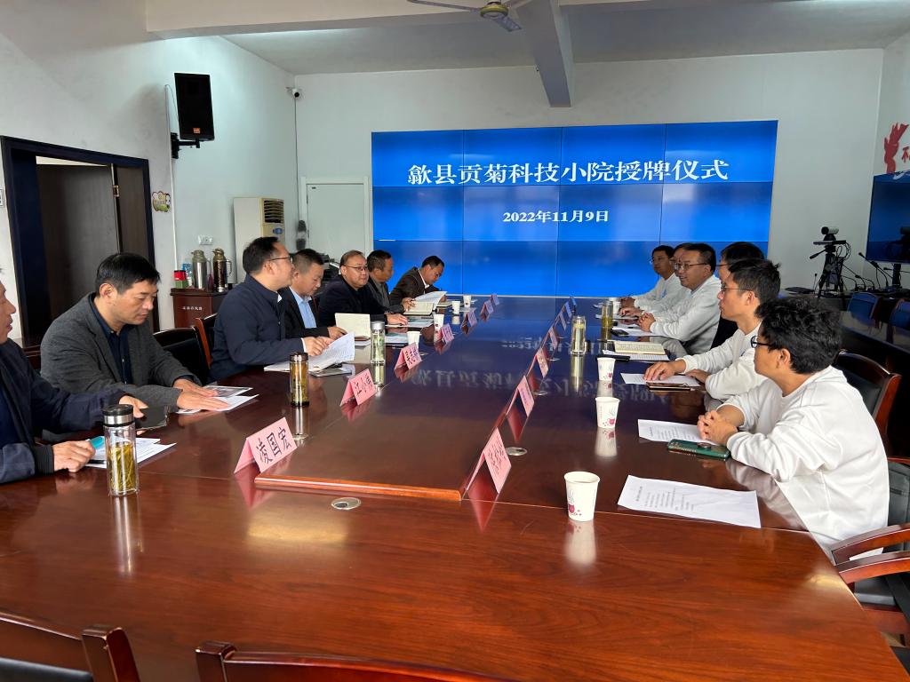 授牌仪式前,校地双方进行了座谈交流。张春雨介绍了学校的办学特色以及学科专业、师资队伍建设及人才培养等方面取得的成果。学校办学历史悠久,多年来扎根农业、农村和农民中,为地区农业发展作出了重大贡献。张春雨指出,歙县“贡菊科技小院”是由国家三部委(教育部、农业农村部、中国科协)支持建设,星空体育·「中国」官方网站通过派驻研究生、研究生导师,解决歙县贡菊产业发展中的瓶颈问题,推广农业新技术,为歙县贡菊产业发展作贡献。