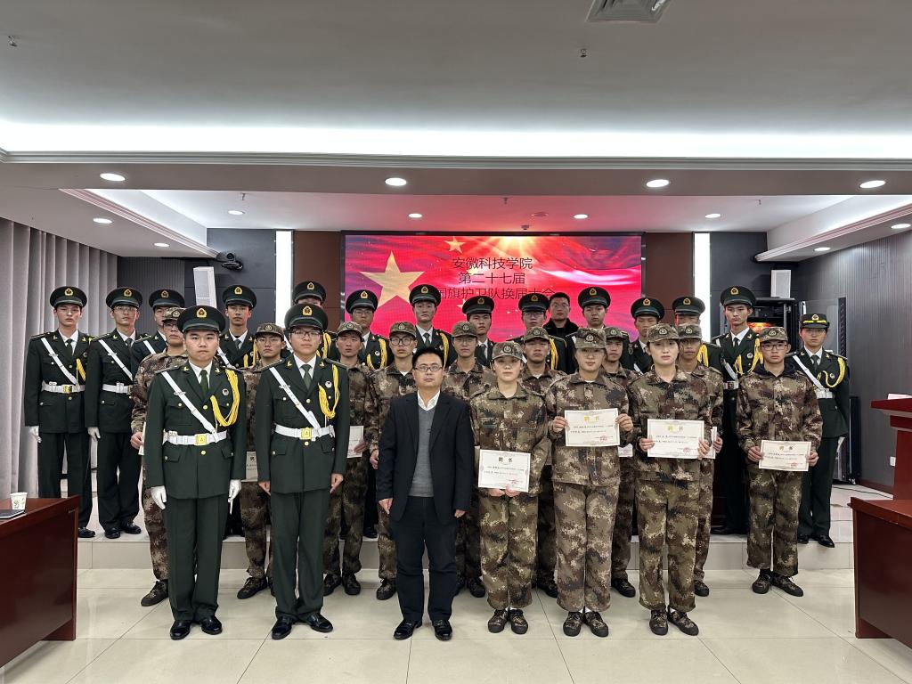 11月23日,我校国旗护卫队分别在凤阳校区会议中心第二会议室和龙湖校区综合信息中心西辅楼111报告厅举行换届大会。党委学工部部长、学生处处长黄立义出席并给予指导,党委学工部副部长、学生处副处长陈君君和胡文靖,党委学工部秘书、校国旗护卫队指导老师石志成参加换届大会,校国旗护卫队第27届全体成员和第26届退役队员近百名同学参会。换届大会由石志成主持。