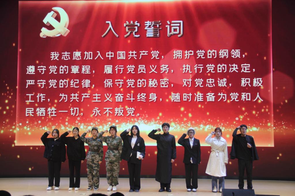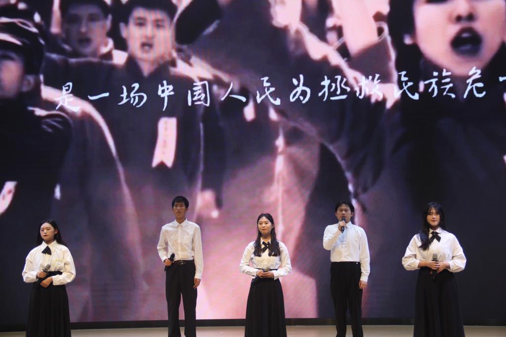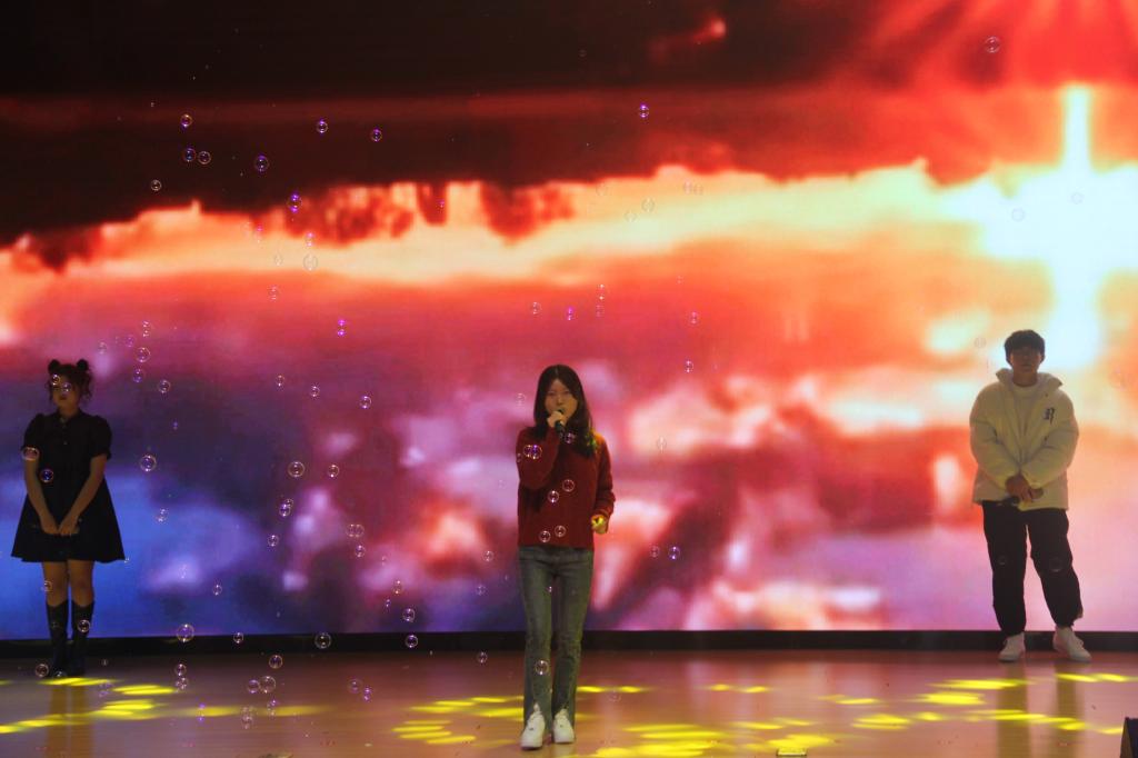 高歌奋进新时代,锐意进取赞中国。诗朗诵《青春献礼二十大》表达了青年大学生乘着时代的春风,在以中国式现代化全面推进中华民族伟大复兴的新征程上续写新的华彩篇章的雄心壮志。演出最后,《唱支山歌给党听》《我和我的祖国》《我爱你中国》《没有共产党就没有新中国》等悠扬的红歌随即唱响。伴随着红色旋律,大学生演员们自编自导的舞蹈更是将演出气氛带向现场最高潮,同学们不禁想起了波澜壮阔的百年征程,想起了历久弥坚的百年初心,想起了催人奋进的百年成就。时代各有不同,青春一脉相承。而青年一代,正是国家与民族的未来与希望。