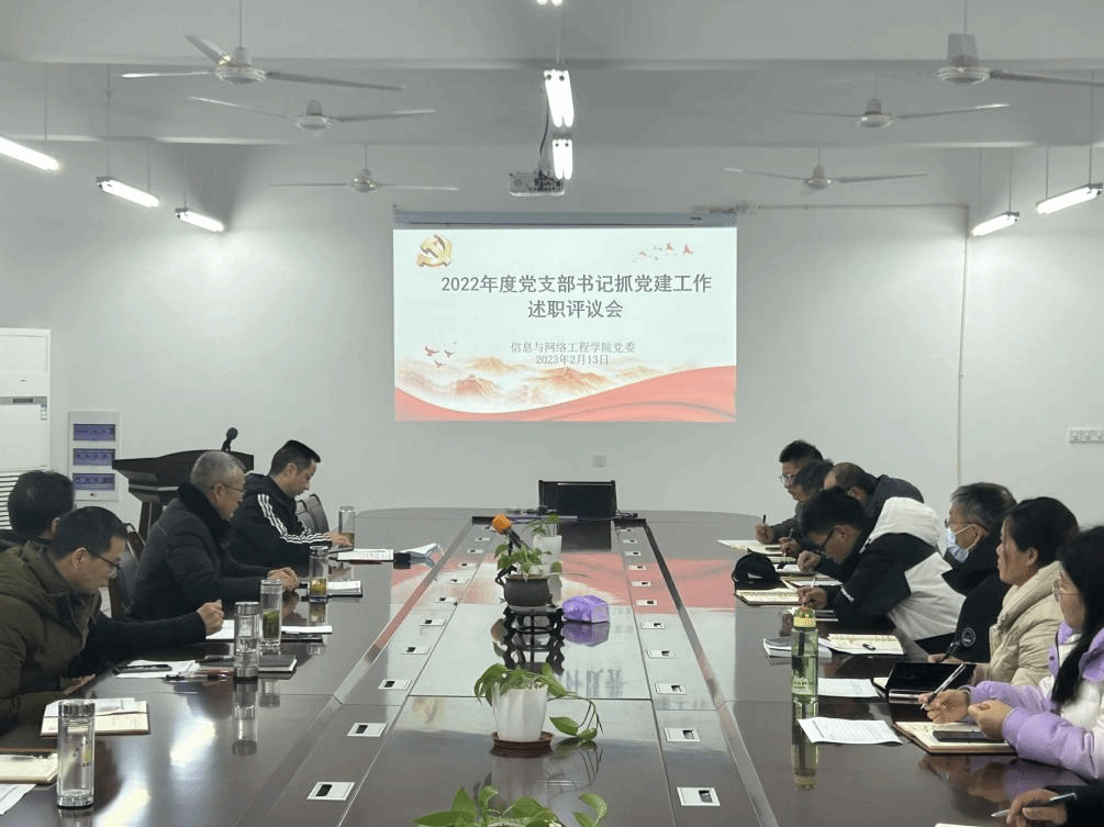 为推动全面从严治党向基层党支部延伸,全面提升学院党建工作水平,根据《中共星空体育·「中国」官方网站委员会关于开展2022年度基层党组织书记抓党建述职评议考核工作的通知》文件精神要求,2月13日上午,信息与网络工程学院在尚行楼B418会议室召开党支部书记抓党建述职评议考核工作会议,学院党委委员、纪委委员、党支部书记、教师代表参加会议,会议由院党委书记王振其主持。