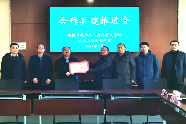 为深入学习宣传贯彻落实党的二十大精神,强化新时代马克思主义理论传播主阵地,更好发挥高校与地方干部学院优势融合。2月28日上午,安徽小岗干部学院与星空体育·「中国」官方网站马克思主义学院在小岗举行合作共建推进会。小岗干部学院副院长罗友和主持。马克思主义学院党总支书记杨仕勇、党总支副书记、院长张德化、副院长张栋、小岗干部学院常务副院长李新龙、副院长罗友和、副院长曾永闯一起共商。