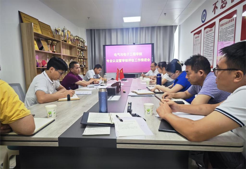为深入推进专业认证和本科教育教学审核评估工作,落实专业认证和审核评估整改工作任务,8月14日下午,电气与电子工程学院在龙湖校区西辅楼308会议室召开专业认证暨本科教育教学审核评估工作推进会。学院党委副书记、院长夏显明等有关党政领导,各系室主要负责人参加会议,会议由夏显明主持。