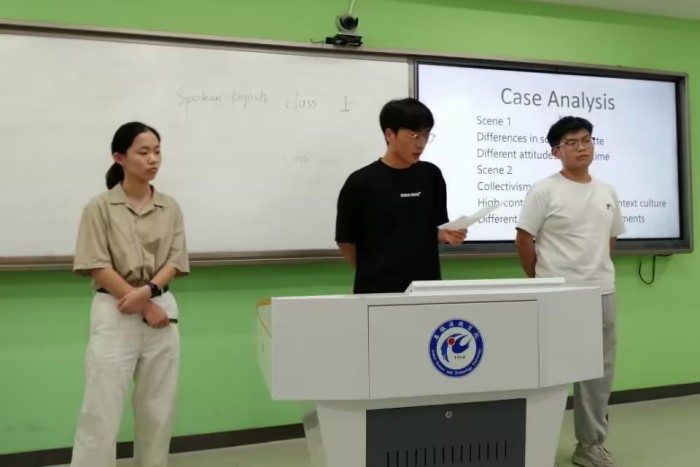 赛前各个团队进行了案例的开发和编写以及PPT的制作。比赛过程中,各个团队以良好的精神状态,流利的口语表达和精彩的表演,呈现了在教育、医疗、日常生活和外交谈判等跨文化语境中由于文化差异而造成的文化冲突,然后结合相关跨文化知识对文化冲突进行了分析,提出了相应的解决方案。在此过程中,参赛选手体现出对中国文化的认同和热爱。评委教师针对参赛团队的案例进行提问,参赛学生结合相关跨文化理论和知识进行了回答。评委教师分别从案例开发、案例展示、案例分析、创新意识和评委提问五个方面进行了评分。根据推选规则,评委教师从参赛团队中推选了一个英语混合组团队和一个公共英语组团队代表学校参加安徽省复赛。