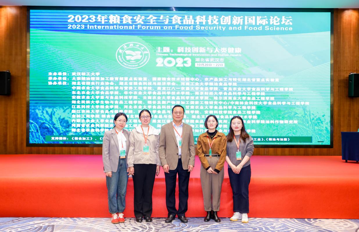 为贯彻落实党的二十大精神和全国粮食和和物资储备工作会议精神以及“藏粮于地、藏粮于技”战略,推动粮食产业链、价值链、供应链“三链协同”,夯实粮食加工储藏科技支撑,提高粮食安全保障能力,促进粮食营养高值化发展和粮食科技成果推广转化应用,由中国农业大学食品科学与营养工程学院、河南工业大学粮油食品学院、安徽农业大学茶与食品科技学院、星空体育·「中国」官方网站食品工程学院等单位协办的“2023年粮食安全与食品科技创新国际论坛大会”于10月20日-22日在湖北武汉召开,我校食品工程学院院长杜传来和院青年教师杨丽萍、于鲲、李培燕、杨玉玲应邀参会。