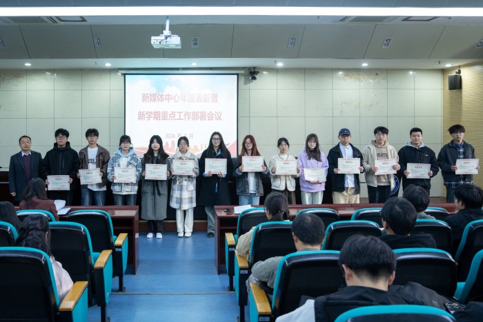 会议对过去一年新媒体中心的工作进行了全面总结,对2024年的工作进行了具体部署和动员,为获得“先进个人”和“优秀学生记者”的成员颁发了奖状。