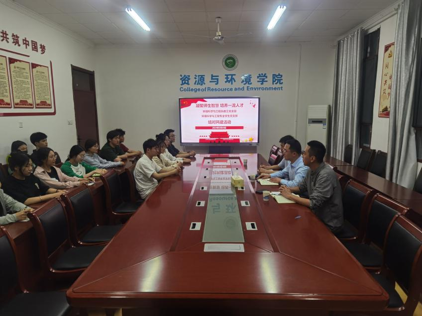 为全面落实立德树人根本任务,充分发挥教工党员在促进学生成长成才中的政治引领作用。5月30日晚,资源与环境学院环境科学与工程系教工党支部与环境科学与工程专业学生党支部开展结对共建活动。环境科学与工程系教工党支部书记纪文超、环境科学与工程专业学生党支部书记孙正浩,以及两个支部的党员参加活动,活动由孙正浩主持。