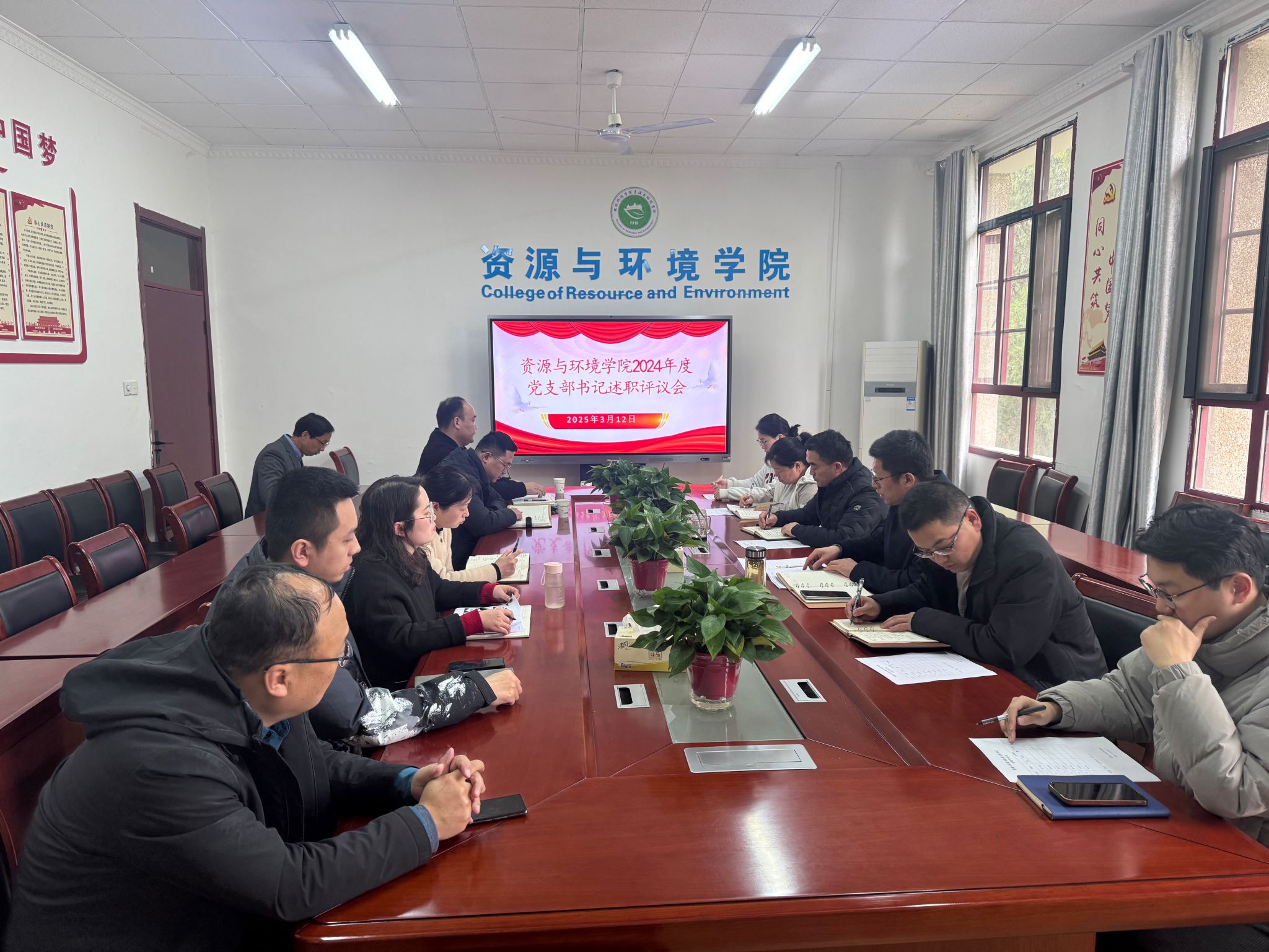 3月12日下午,资源与环境学院召开2024年度党支部书记抓党建述职评议考核会。会议由学院党委书记沈树周主持,学院党委委员、各党支部书记、教师代表和学生代表参加会议。