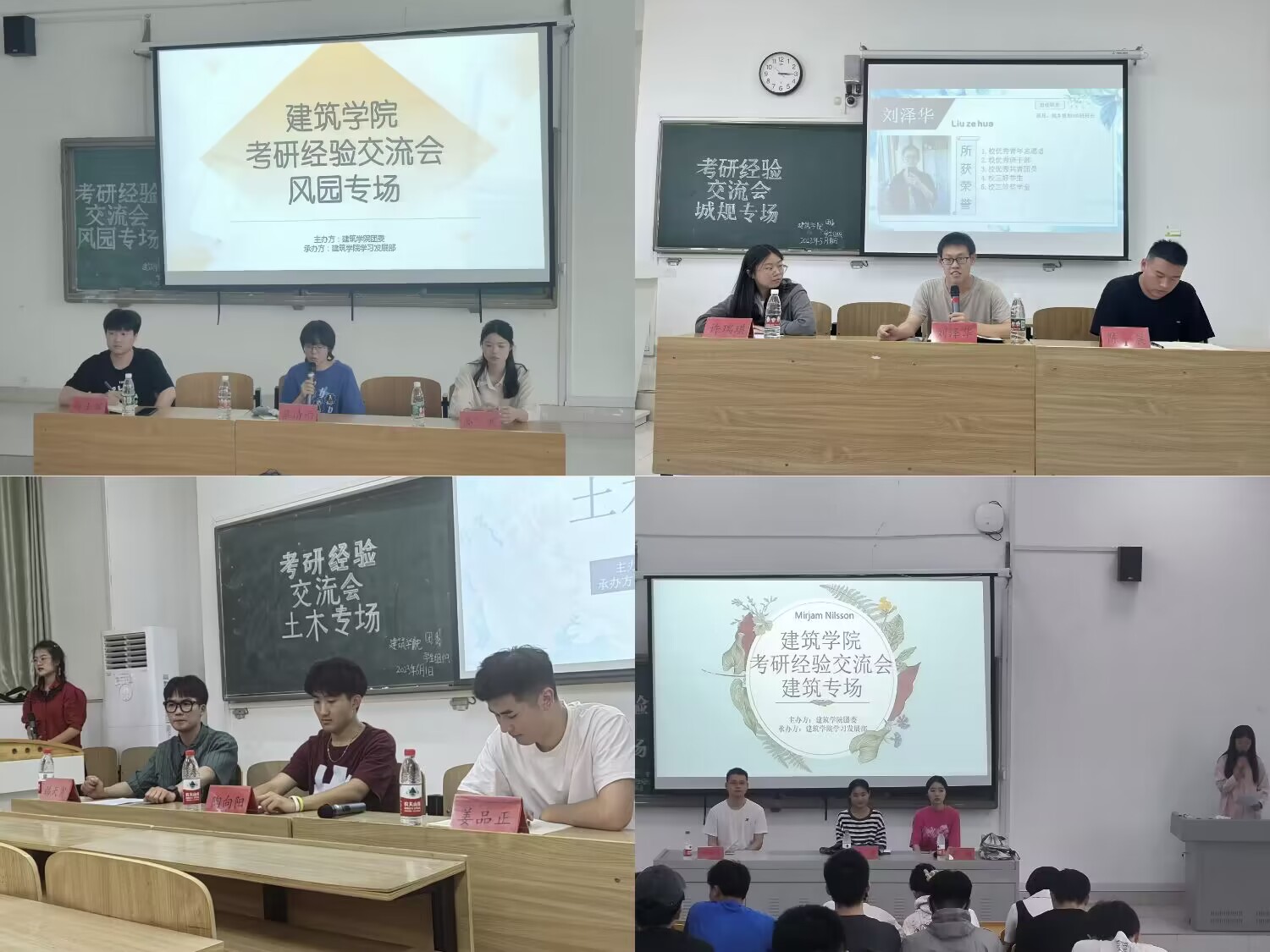 为加强学生考研指导,提高学生考研技能。近期,建筑学院分别举办了土木工程、城乡规划、风景园林、建筑学专业的考研经验交流会。交流会分别邀请各专业2023年考研成功的同学作为主讲人,2024届各专业辅导员、全体学生,部分低年级学生参加。