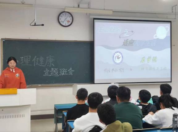 曹贝怡列举了新生可能出现的心理不适应现象表现,曹贝怡从时间规划、学习适应、情感适应、心理适应方面依次讲解,耐心解答同学们的疑惑并给出相应解决对策建议。曹贝怡号召同学们改变思想观念,合理规划时间,勇敢面对挫折,积极迎接挑战。